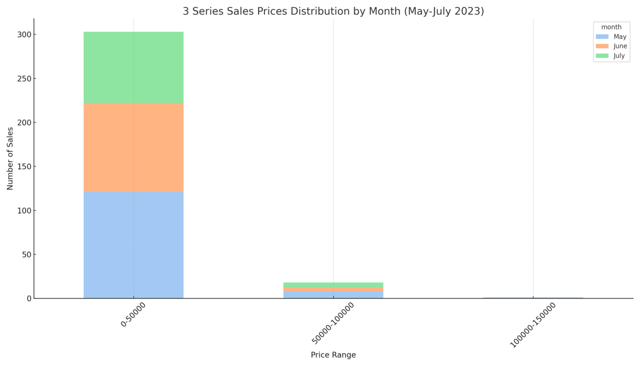 Dominant Players: As expected, the Porsche 911 led the pack with over 500 sales, solidifying its evergreen appeal. Hot on its heels were the Chevrolet Corvette and BMW 3 Series, registering 300+ sales, holding their ground in the marketplace.