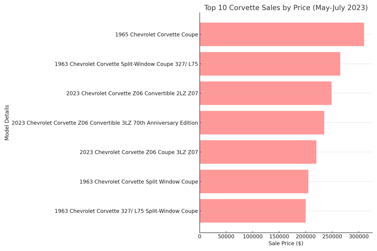 When it comes to sheer numbers, the 1960s take the crown as the best-selling decade. However, in the current landscape, the 2023 Corvette steals the spotlight with the most sales under its belt, boasting an average sale price of $171,900.