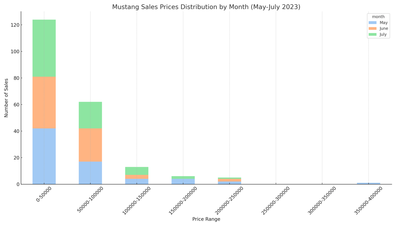 Pricing Dynamics: Car enthusiasts seemed willing to spend a bit more as months progressed. While the average car prices in May and June hovered around $47K and $47,500 respectively, July saw a slight increase, reaching an average of $49,500. This could hint at a marginal rise in premium model sales or subtle market shifts.
