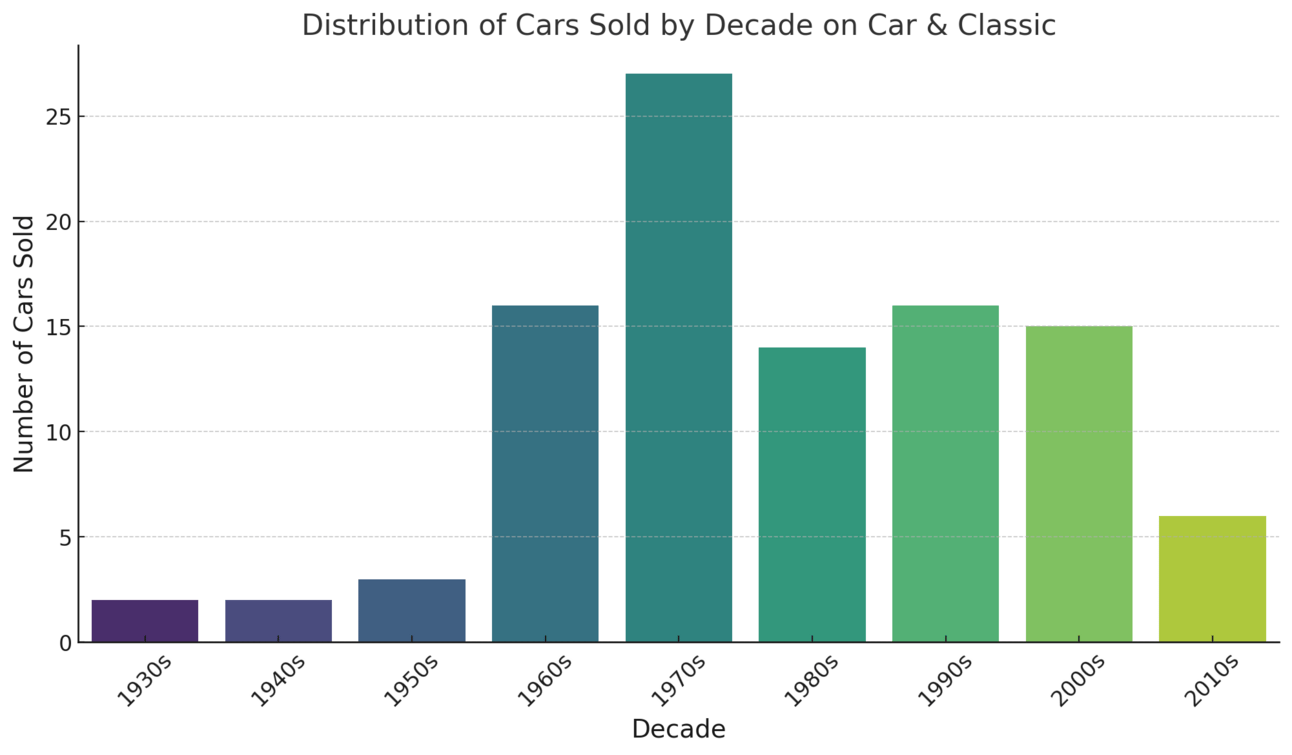 Whilst I’m on Car & Classic, it’s as clear as day from the chart below that the 1970’s was their hotspot last week. Will it be the same for this week?