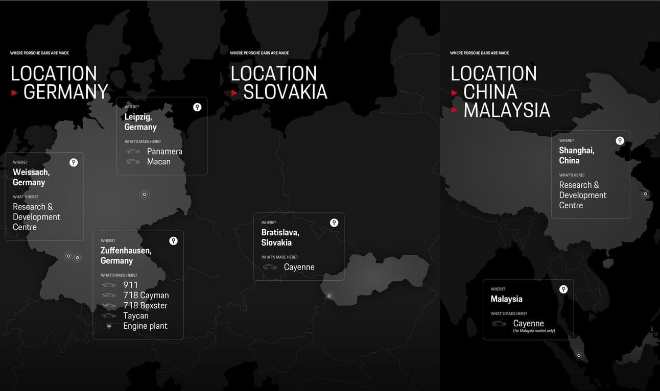 Porsche map of the world – Ever wondered where that 911 or Cayenne is made? Wonder no longer…
