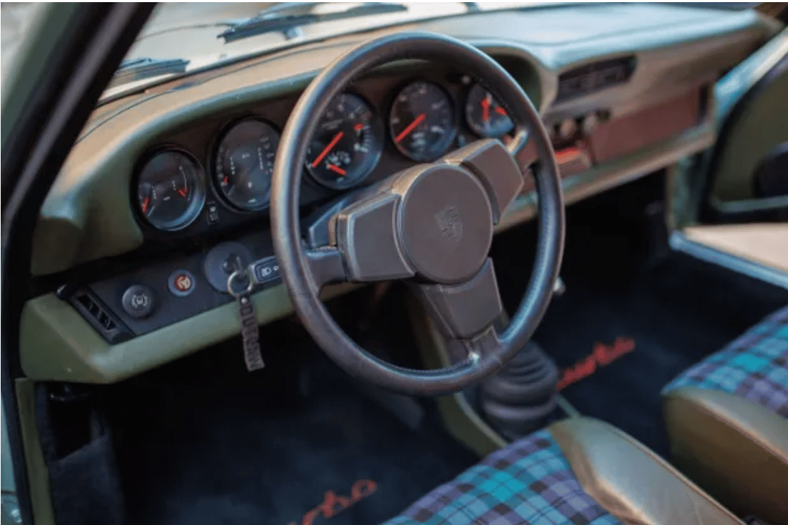 Step inside, and you're greeted by Dark Green leather and Black Watch Tartan seat inserts. The dashboard, folding rear seats with Turbo embroidery, power windows, air conditioning, and a CD stereo complete the picture of elegance.