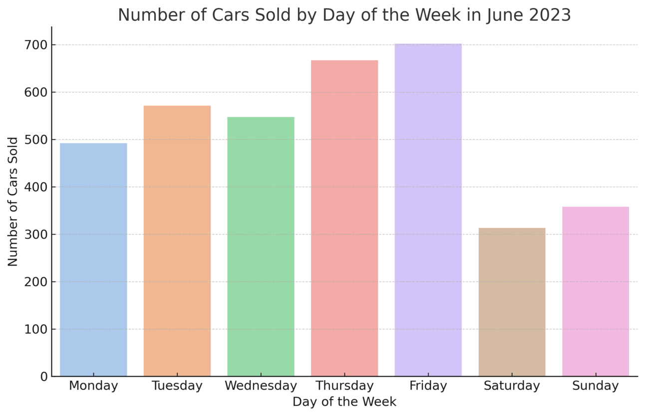 Ever wondered what is the most popular day of the week for cars sold? Here’s the answer for June and surprisingly it’s Friday!