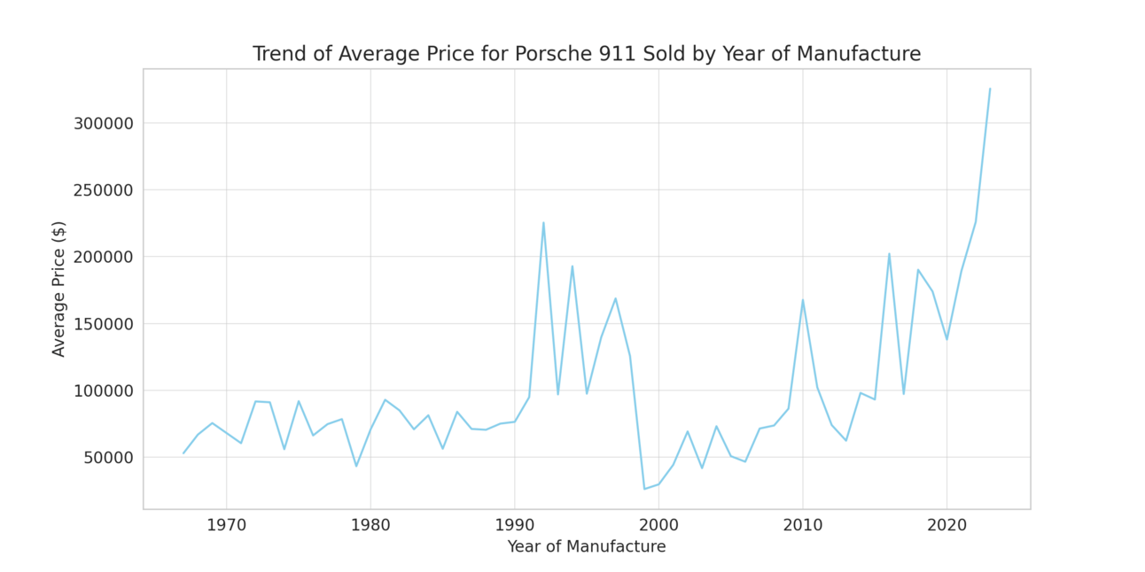 Now, let's take a quick glance at the average prices for each year of the 911.
