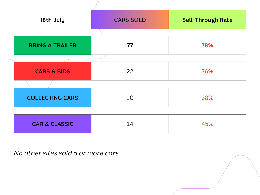 By the way, today Hemmings has 13 listings, and they'll be hoping to secure a spot on the leaderboard once again. PCarMarket is also in the race with 9 auctions ending today. On the other hand, Hagerty, though yet to make a significant breakthrough into the market, has just two auctions ending today. If you want to explore all the listings available on each platform, you can refer to my post from Monday, which you can find here.