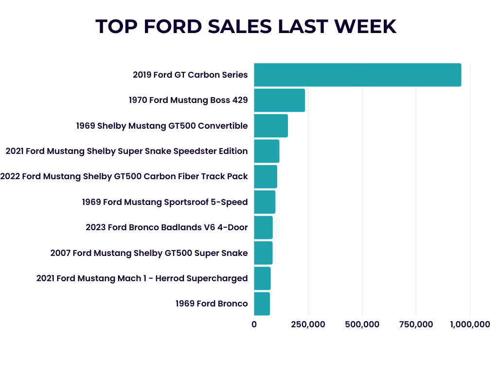 At the top end, we had the iconic 2019 Ford GT Carbon Series, a rare supercar that exemplifies Ford's relentless pursuit of high-performance excellence. It commanded an impressive $958,000, setting the bar high for enthusiasts and collectors. ️